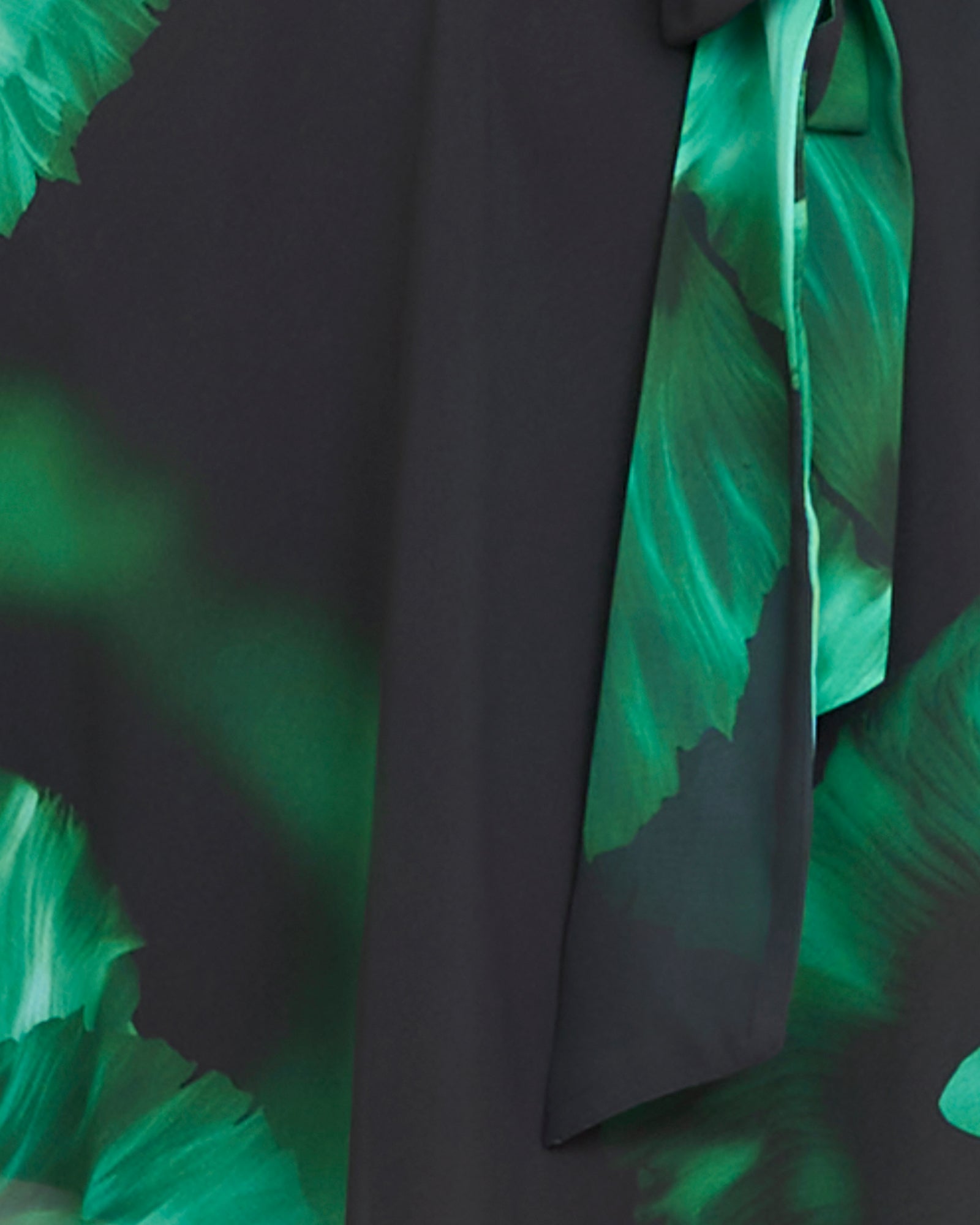 - Semi-sheer fabrication; green floral print on a black base