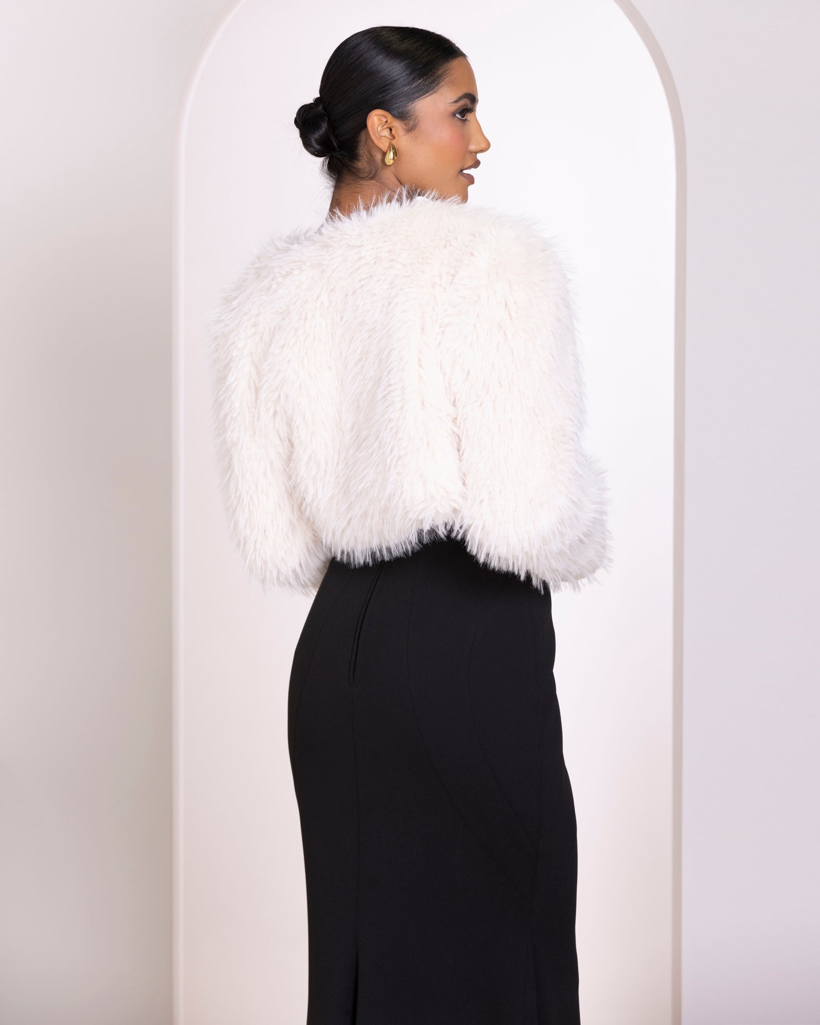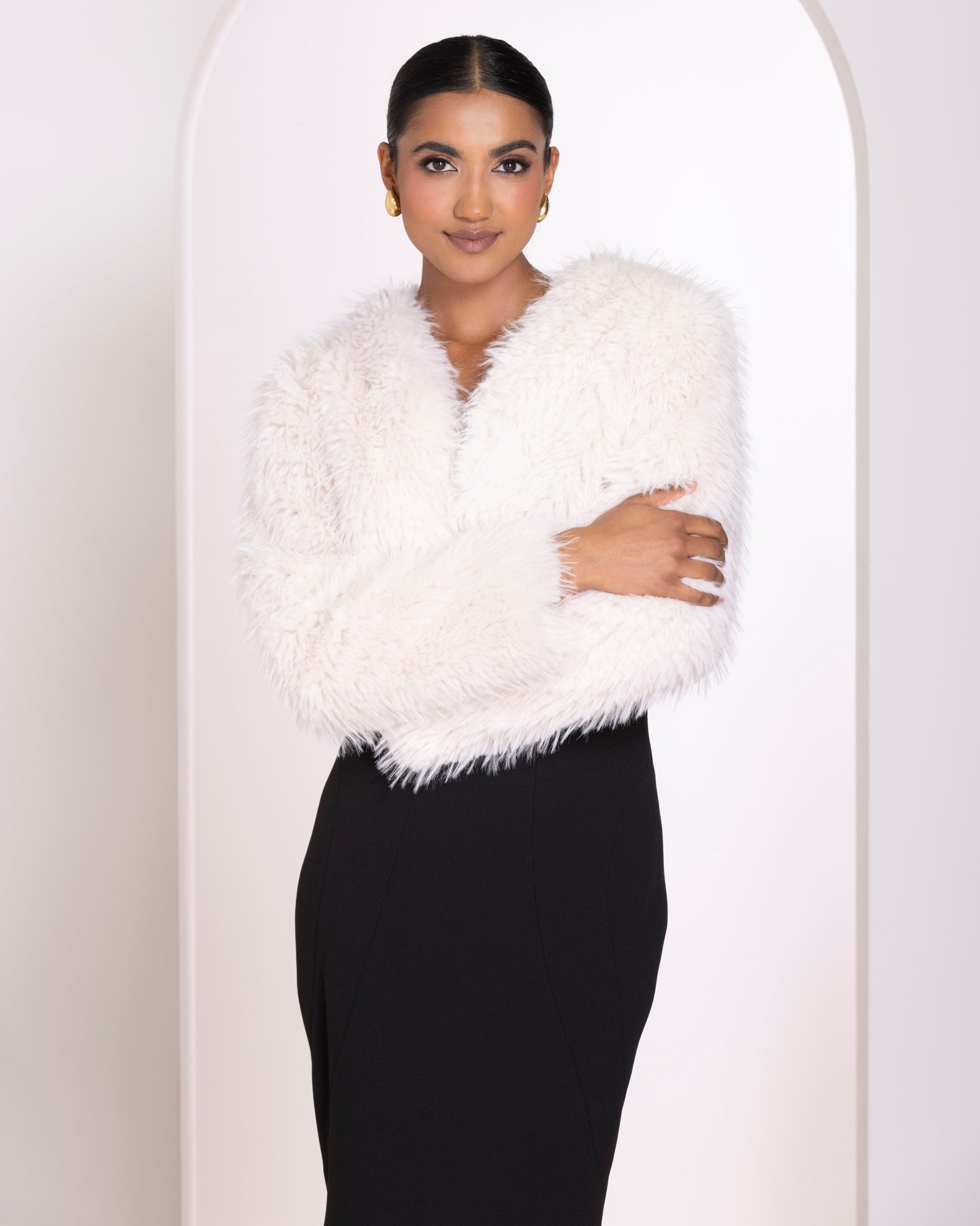 - Shaggy faux fur fabrication, soft-touch, non-stretch