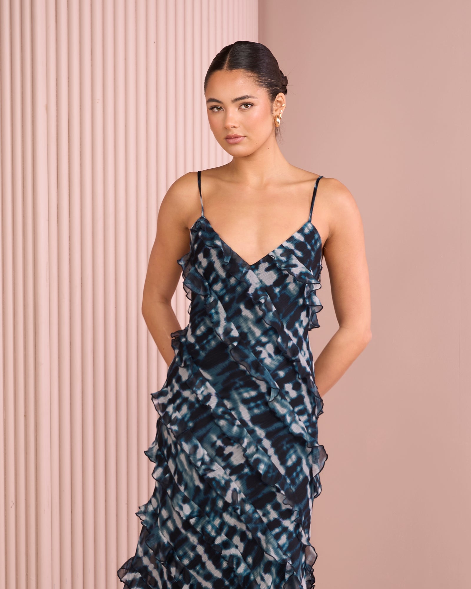 - Delicate chiffon fabrication in shibori print