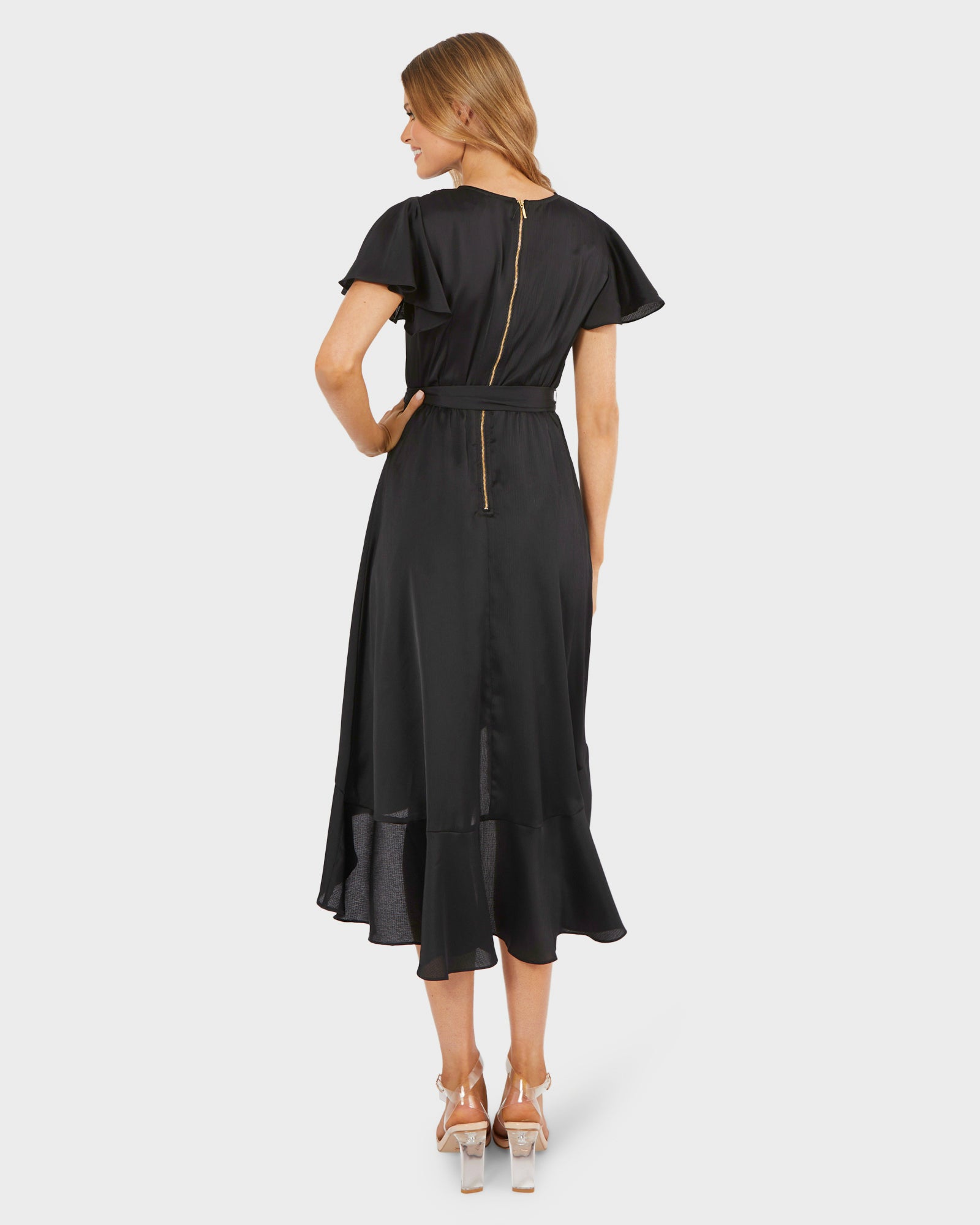 - Exposed rear gold zip