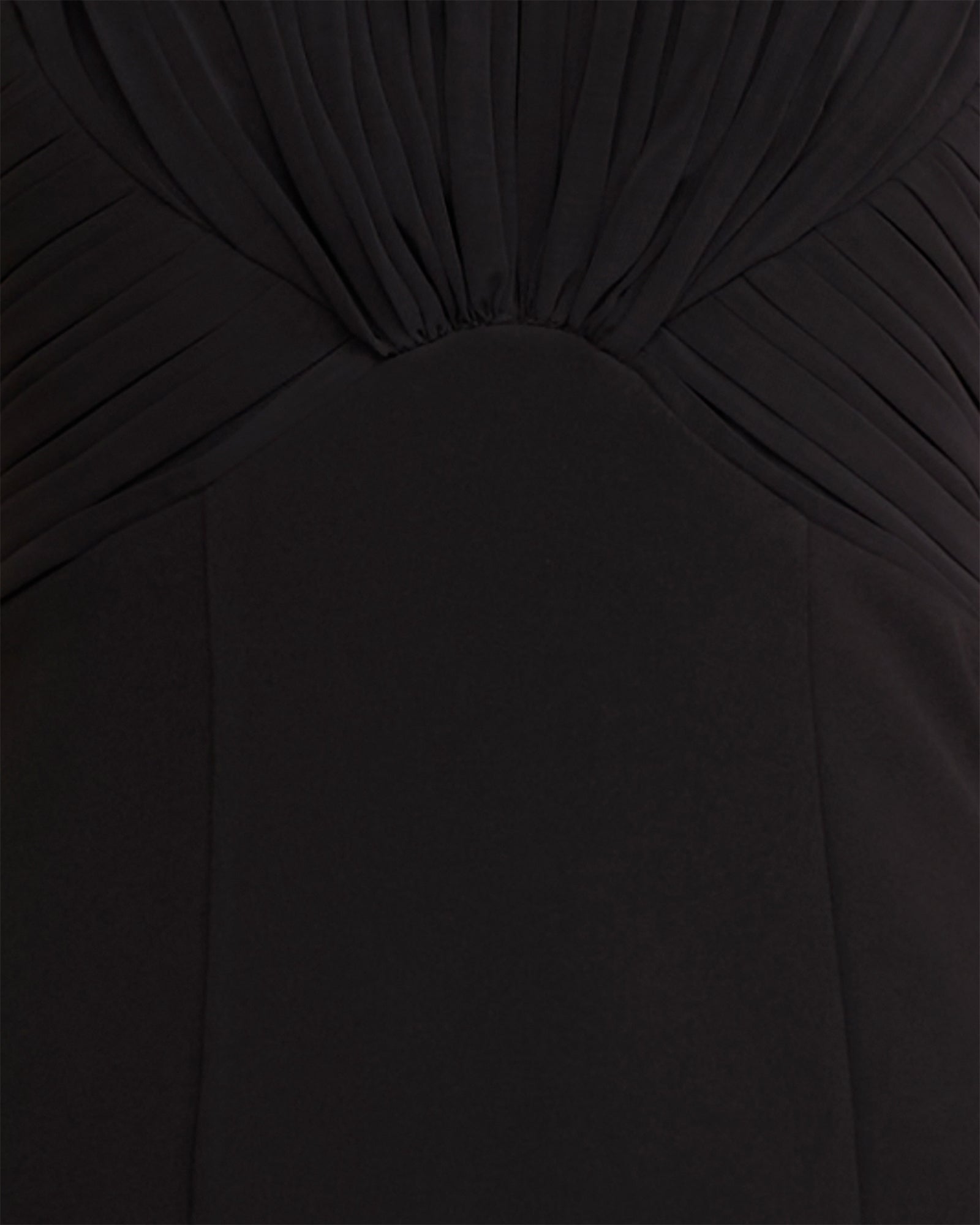 Main: 95% Polyester, 5% Elastane. Contrast: 90% Polyester, 10% Elastane. Lining: 100% Polyester. Do not wash. Do not bleach, rub, soak or wring. Cool iron on reverse side. Dry clean only. Avoid rough surfaces as this may damage fabric.