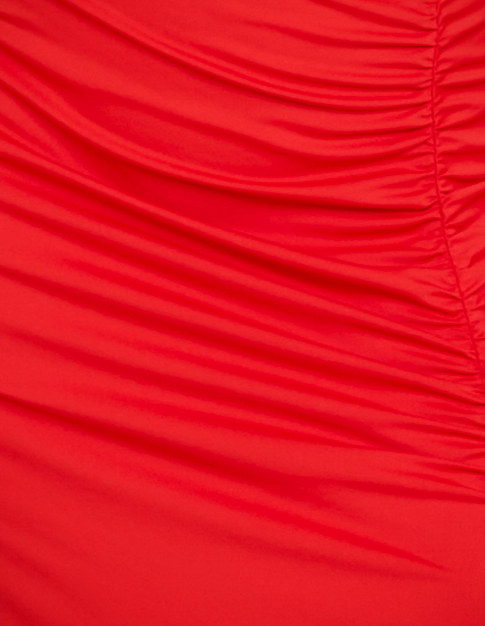 - Ruching at wearer's left shoulder and left thigh
