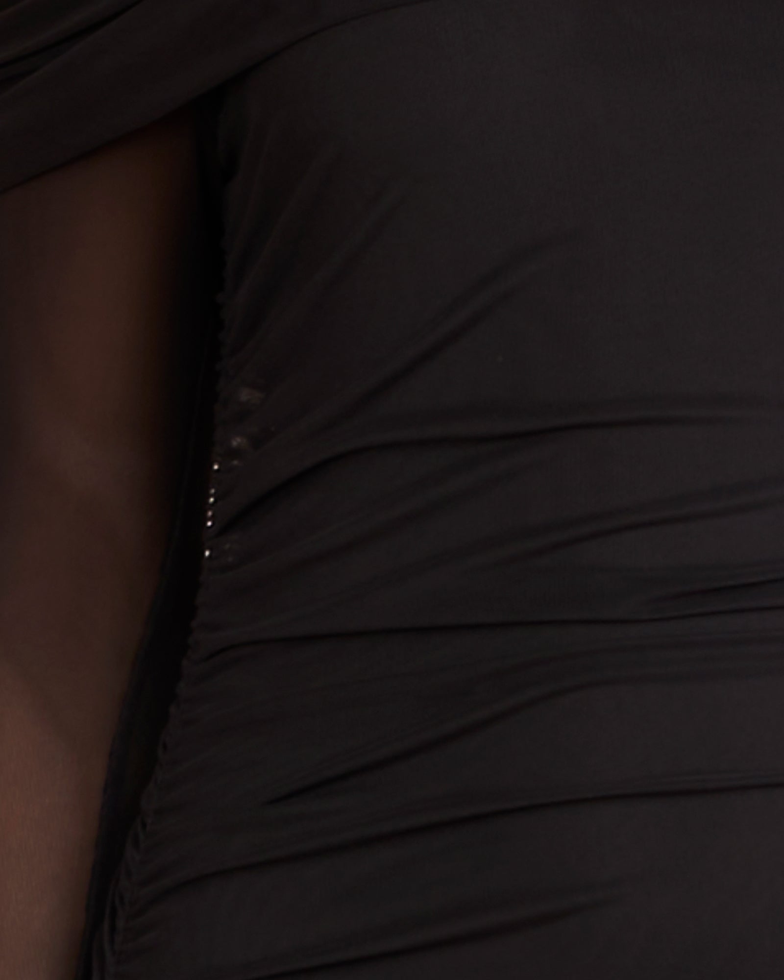 Main: 95% Polyester, 5% Spandex. Lining: 100% Polyester. Cold hand wash separately. Do not bleach, soak, rub or wring. Do not tumble dry. Dry flat in shade. Cool iron under cover cloth if required. Do not dry clean. Avoid rough surfaces as this may damage fabric.
