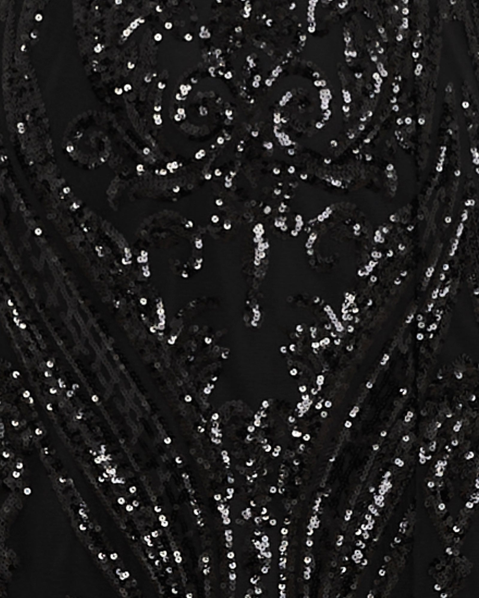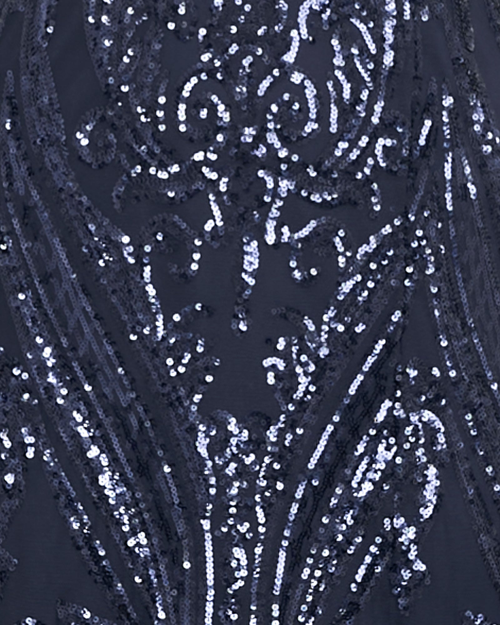 Main: 95% Polyester, 5% Elastane. Lining: 100% Polyester. Do not wash. Do not bleach, rub, soak or wring. Do not iron sequin. Dry clean only. Avoid rough surfaces as this may damage fabric.